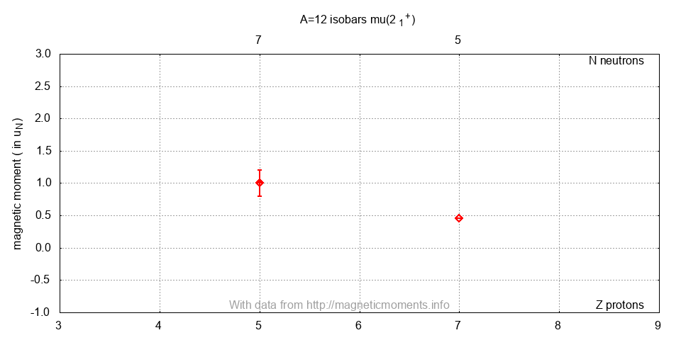 | 12N | 17338.1 ± 1 | 0. | 11.0 ms | 1+ | 0.4571(1) | b-NMR | 2010ZH03 | 10.1088/0256-307X/27/2/22102 | ||||