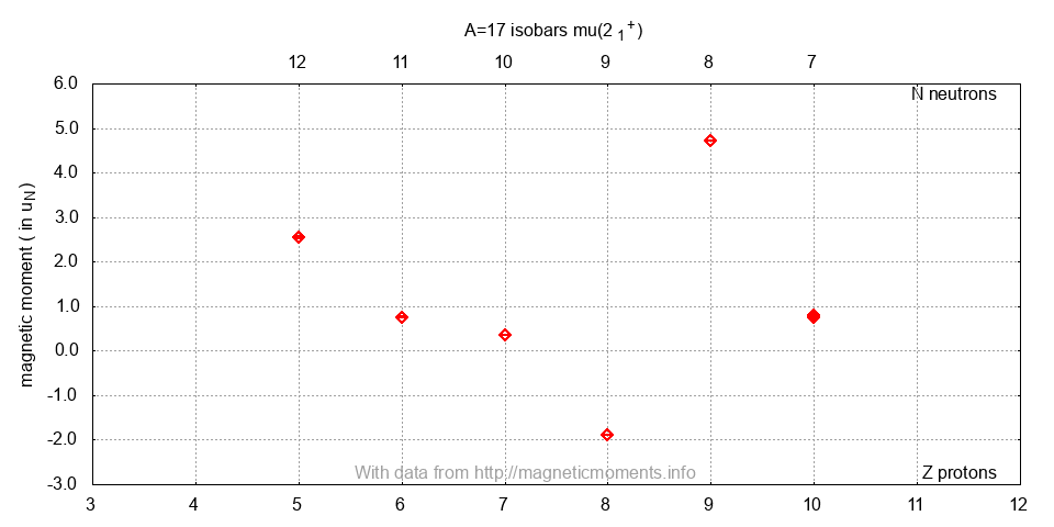 | 17Ne | 16500.5 ± 0.4 | 0. | 109.2 ms | 1/2- | +0.7873(14) | [21Ne] | CFBLS | 2005GE06 | 10.1103/PhysRevC.71.064319 | |||