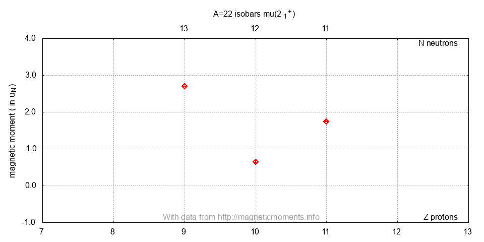 | 22Na | -5181.52 ± 0.17 | 0. | 2.6018 y | 3+ | +1.746(3) | [23Na] | AB | 1949DA01 | 10.1103/PhysRev.76.1068 | |||