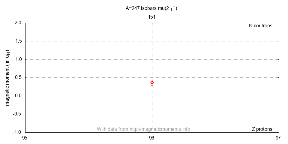 247Cm | 65534 ± 4 | 0. | 1.6 x 10^7 y | 9/2- | 0.36(7) | [241Am] | EPR | 1973AB03 | 10.1016/0375-9601(73)91006-2 | |||