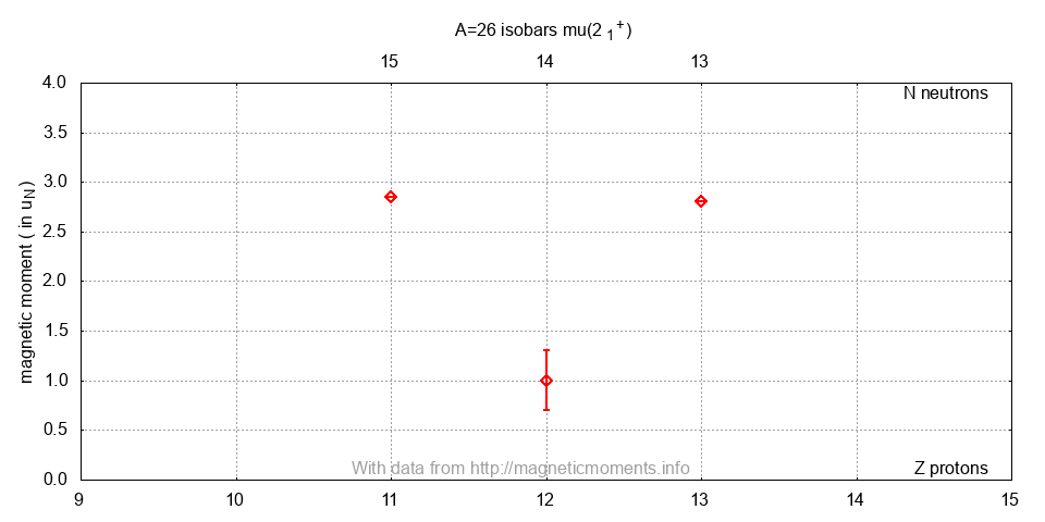 | 26Al | -12210.11 ± 0.06 | 0. | 7 x 10^5 y | 5+ | +2.804(4) | [27Al] | ABLS | 1996CO04 | 10.1088/0954-3899/22/1/008 | |||
