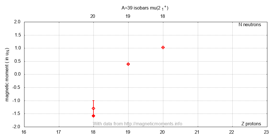 39K | -33807.19 ± 0.005 | 0. | stable | 3/2+ | +0.39147(3) | ABLS | 1993DU08 | 10.1016/0168-9002(93)90392-U | ||||