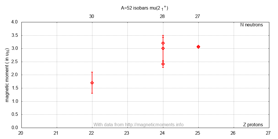 52Mn | -50706.9 ± 1.9 | 0. | 5.59 d | 6+ | +3.0622(12) | [55Mn] | AB | 1966AD03 | ||||