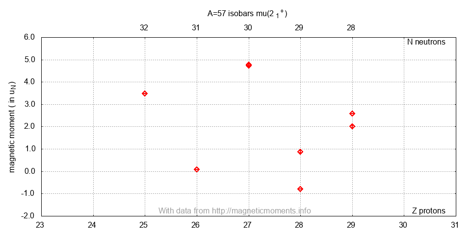 57Cu | -47308.3 ± 0.6 | 0. | 196.3 ms | 3/2- | +2.582(7) | [63Cu] | 2010CO01 | 10.1103/PhysRevC.81.014314 | ||||