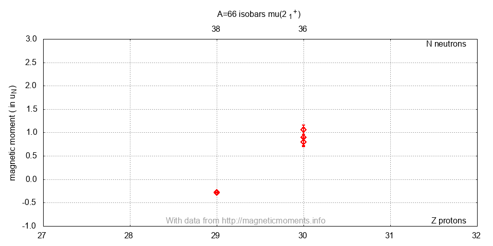 66Ga | -63724 ± 3 | 66. | 23 ns | 2+ | 1.01(2) | TDPAD , R | 1976LE03 | 10.1016/0375-9474(76)90531-5 | ||||