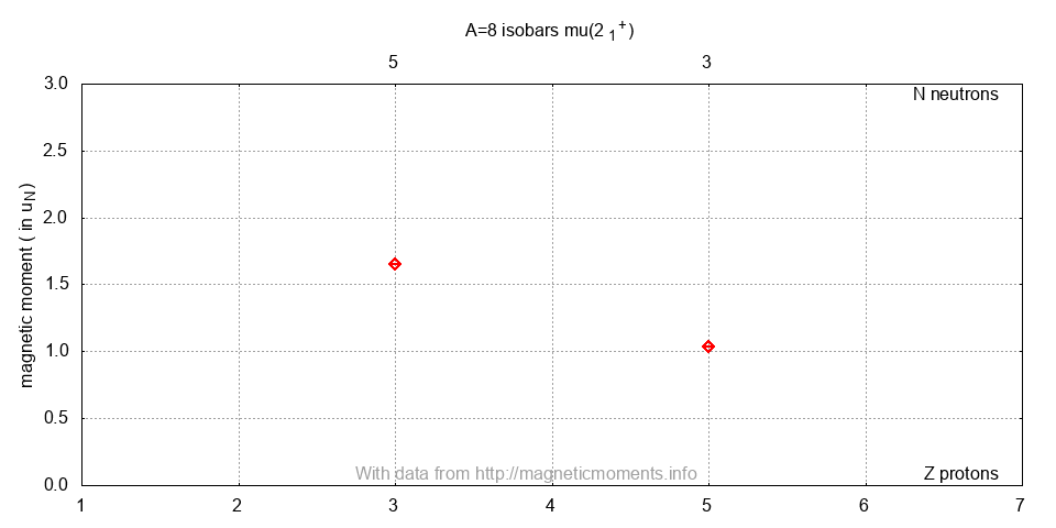 | 8B | 22921.6 ± 1 | 0. | 770 ms | 2+ | 1.0355(3) | b-NMR | 1973MI01 | 10.1103/PhysRevC.7.1003 | ||||